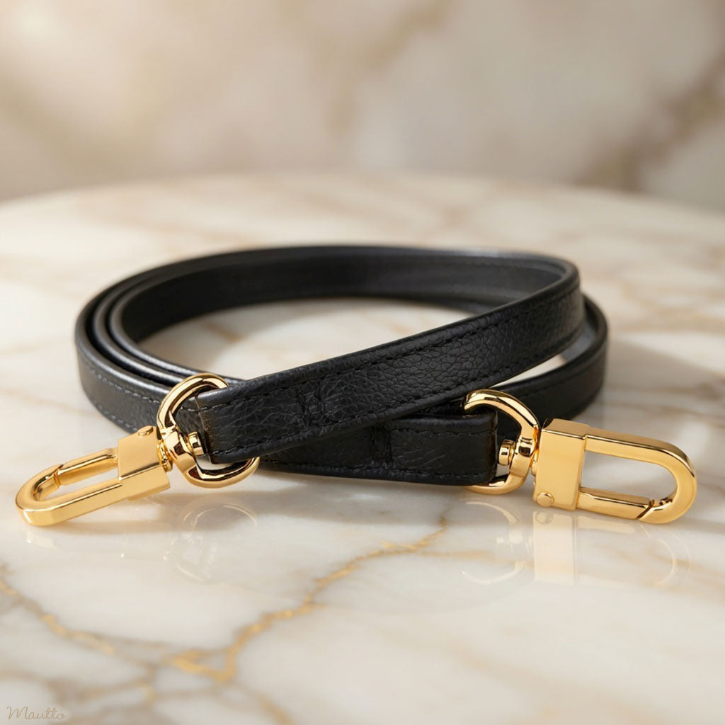 Black Leather Purse Strap - Petite Fit - Customize Length & Metal Clasps