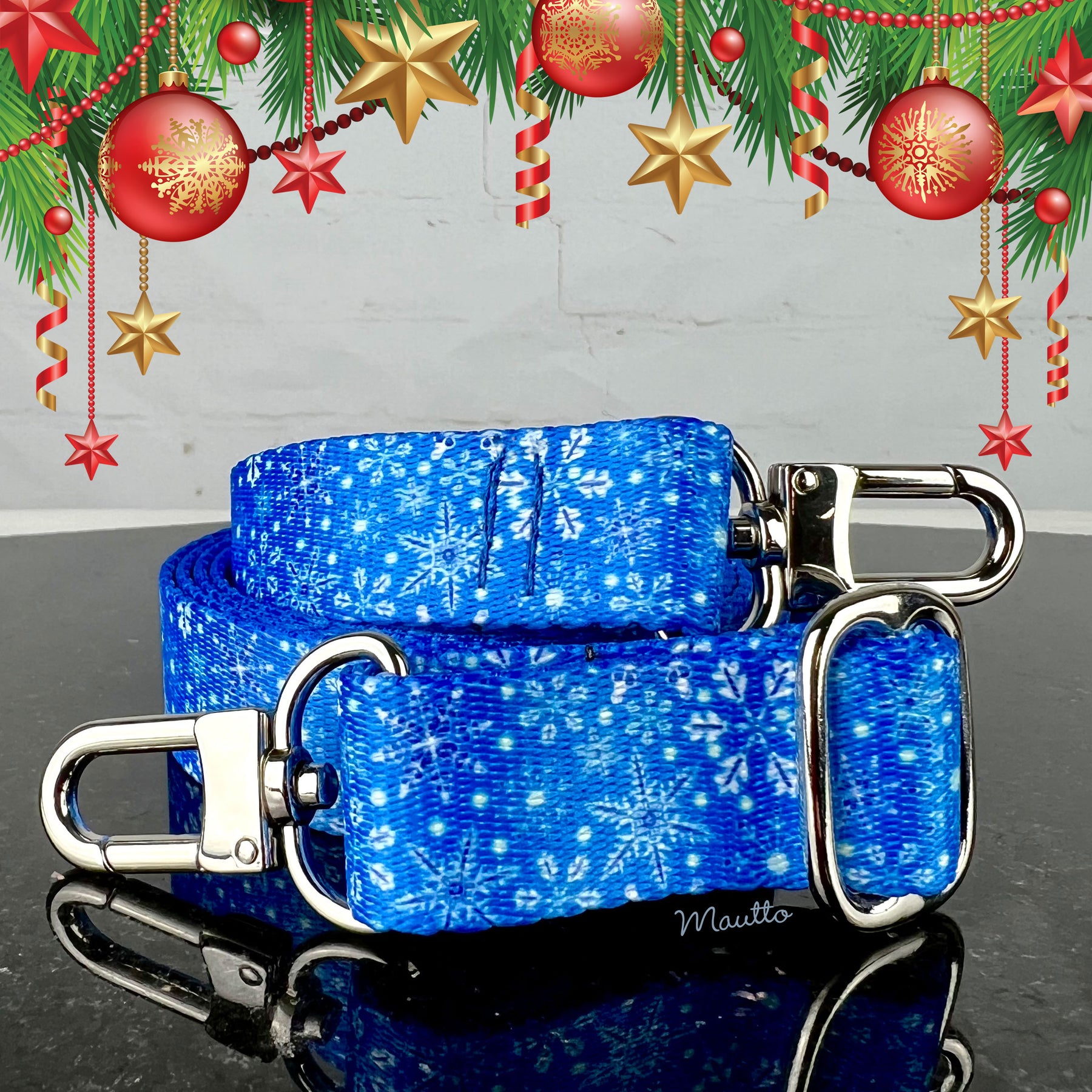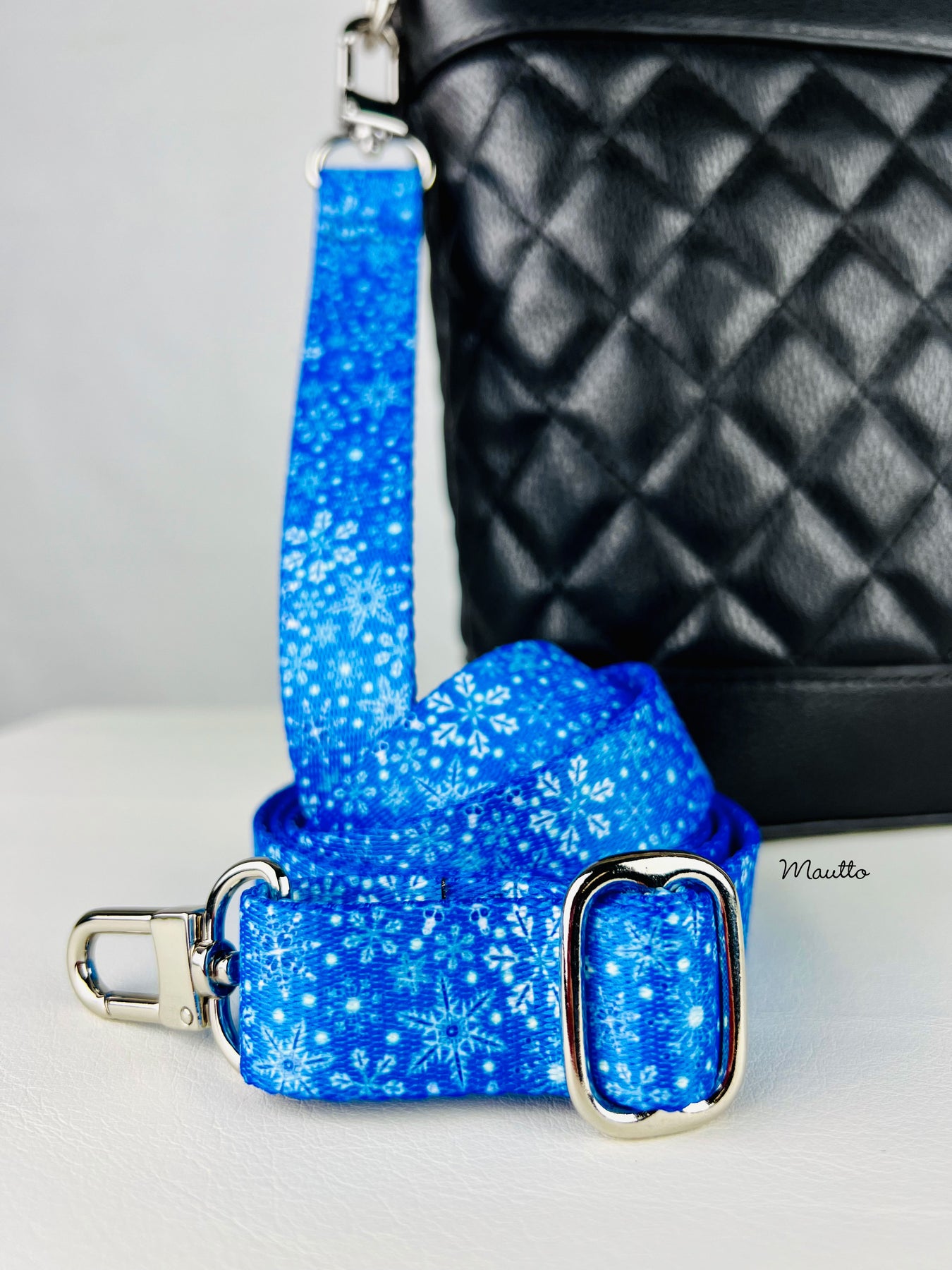 Add a touch of seasonal charm with this handmade adjustable bag strap, featuring a vibrant blue background adorned with crisp white snowflakes. Made from thick, durable nylon, this strap is perfect for dressing up your favorite tote, purse, or crossbody bag during the festive winter months.