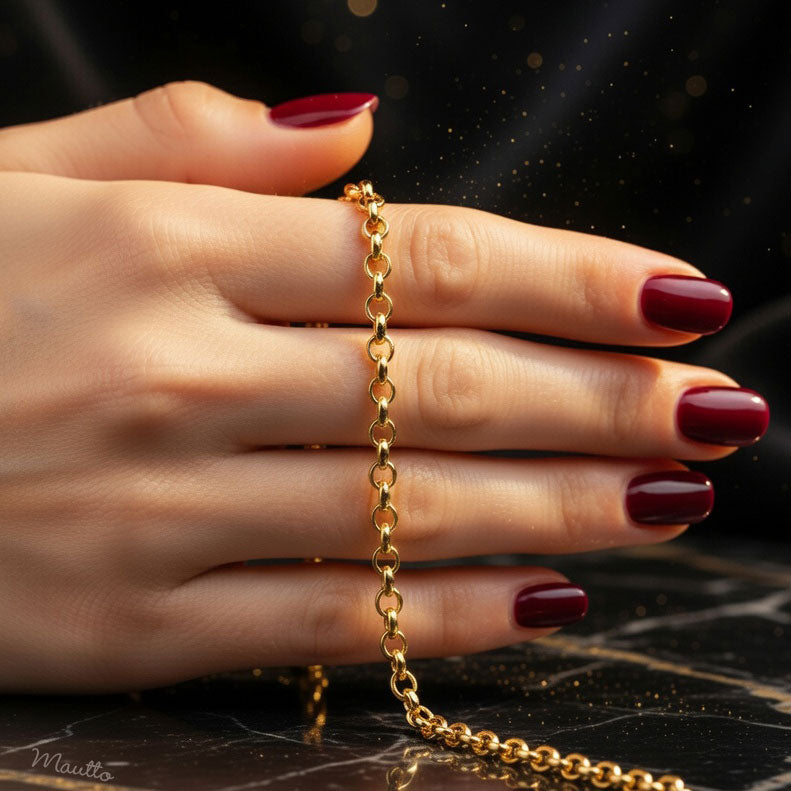 - Jewelry-quality, metal chain with lacquer protectant