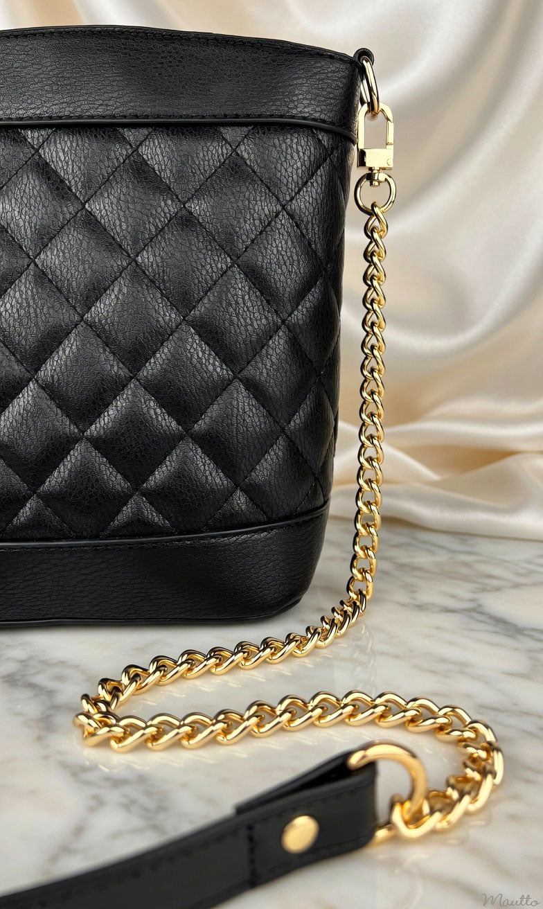 Elegant Gold-tone Chain Strap with Leather Shoulder - Large Classic Curb Chain & U-shape Clips