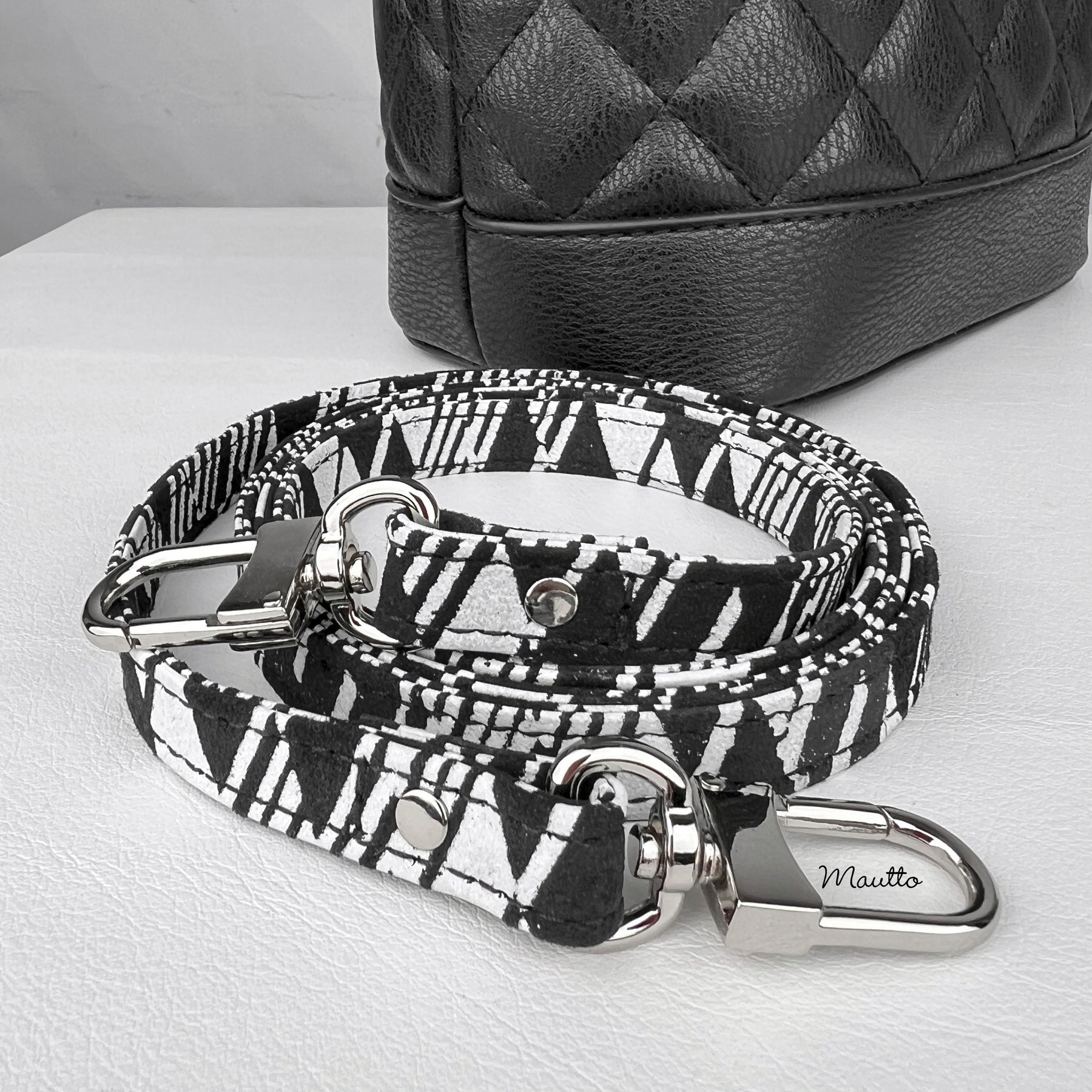 Black & White Suede Purse Strap - Geometric Zebra Inspired Pattern