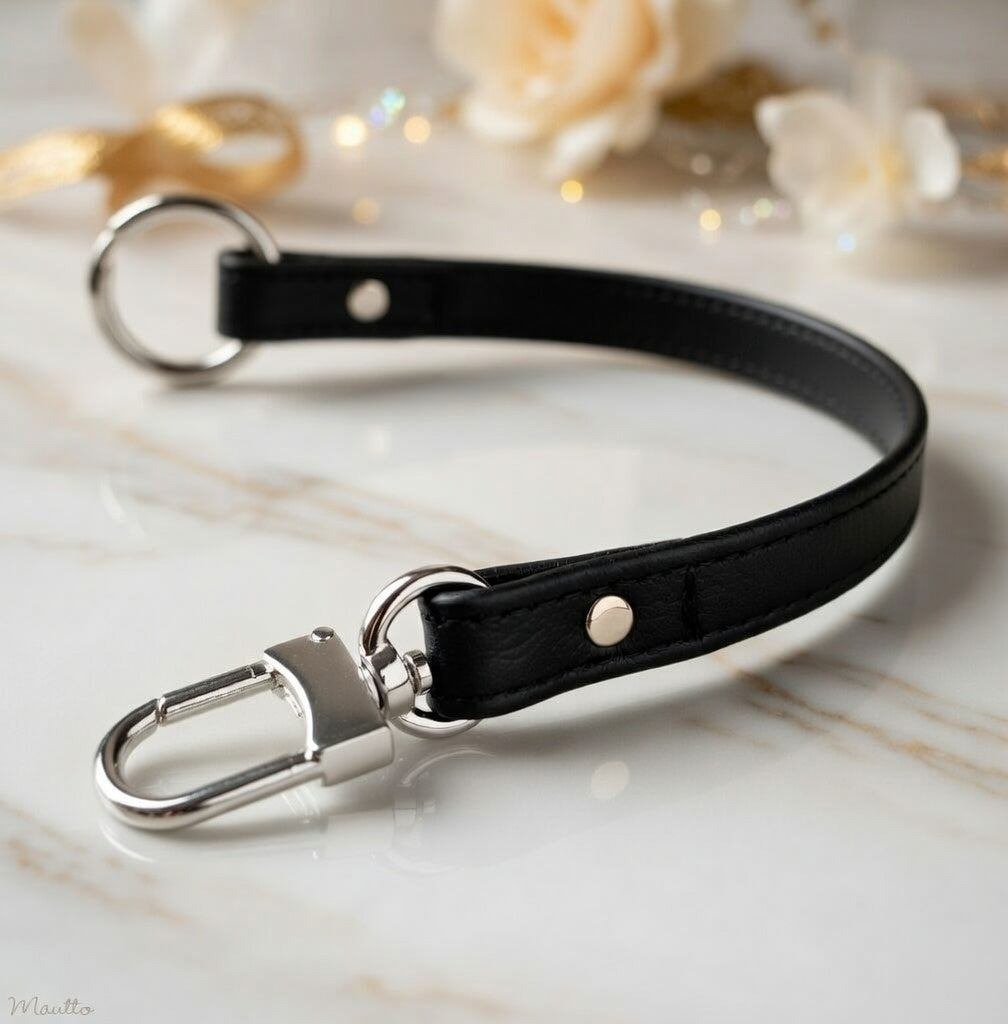 Regular price €21,95Perfect for keeping your keys in the same place at all times! This leather key leash / fob tether, in your choice of leather color and hardware finish, connects your keys to your purse or clothes, for safe storage and easy access. Never worry where your keys are and ensure they’re always connected safely with you.