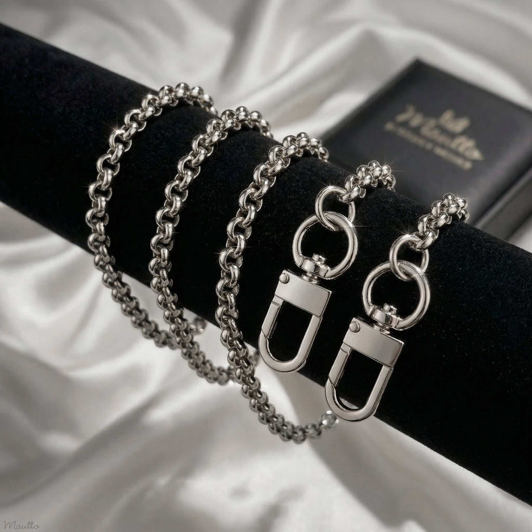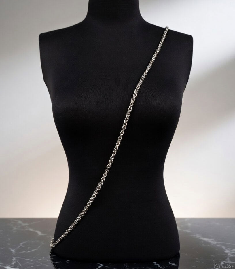 Regular price 305,00 krPremium polished silver-tone chain strap featuring the popular and classic Rolo design. The round shaped, highly polished links reflect light beautifully. This chain's design and weight allow it to be used nicely as a handle, shoulder or across-the-body ("cross body") strap.