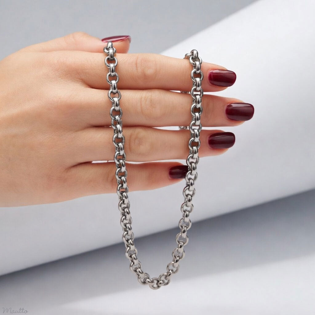 Classic Rolo Chain, Silver-tone Finish - 1/4 inch (7mm) Wide Luxury Chain Strap - Handle to Crossbody Lengths