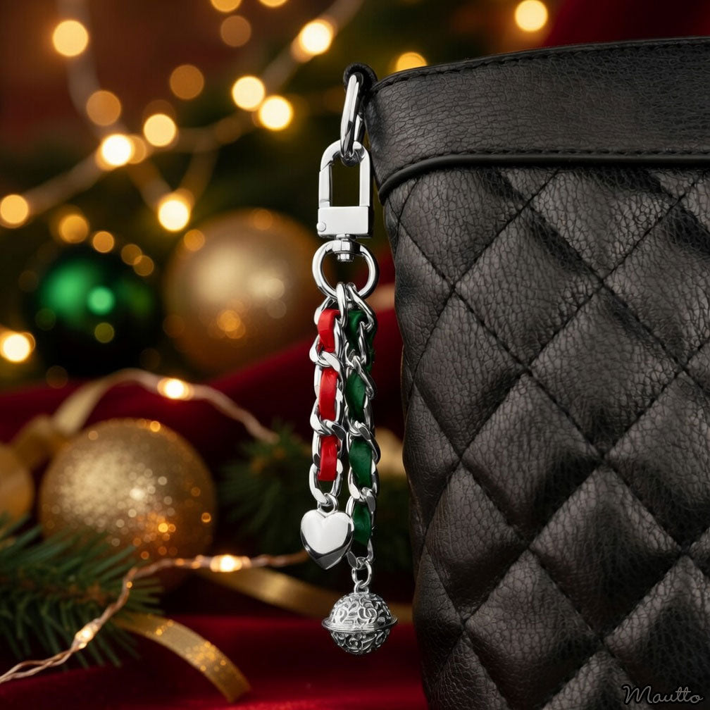 Regular price 279.00 kr🎄Show your Christmas Spirit during the holiday season with this festive and fancy charm! Made with a decorative jingle bell/ball that makes the classic soft charm noise when it's shaken or moved, and a shiny heart. The diamond-cut chain links have green and red leather woven-in by hand, with the ends hand stitched (not glued) for durability.