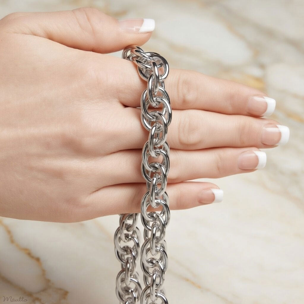 Prince of Wales Chain, Silver-tone Finish - 1/2 inch (13mm) Wide Luxury Chain Strap - Handle to Crossbody Lengths